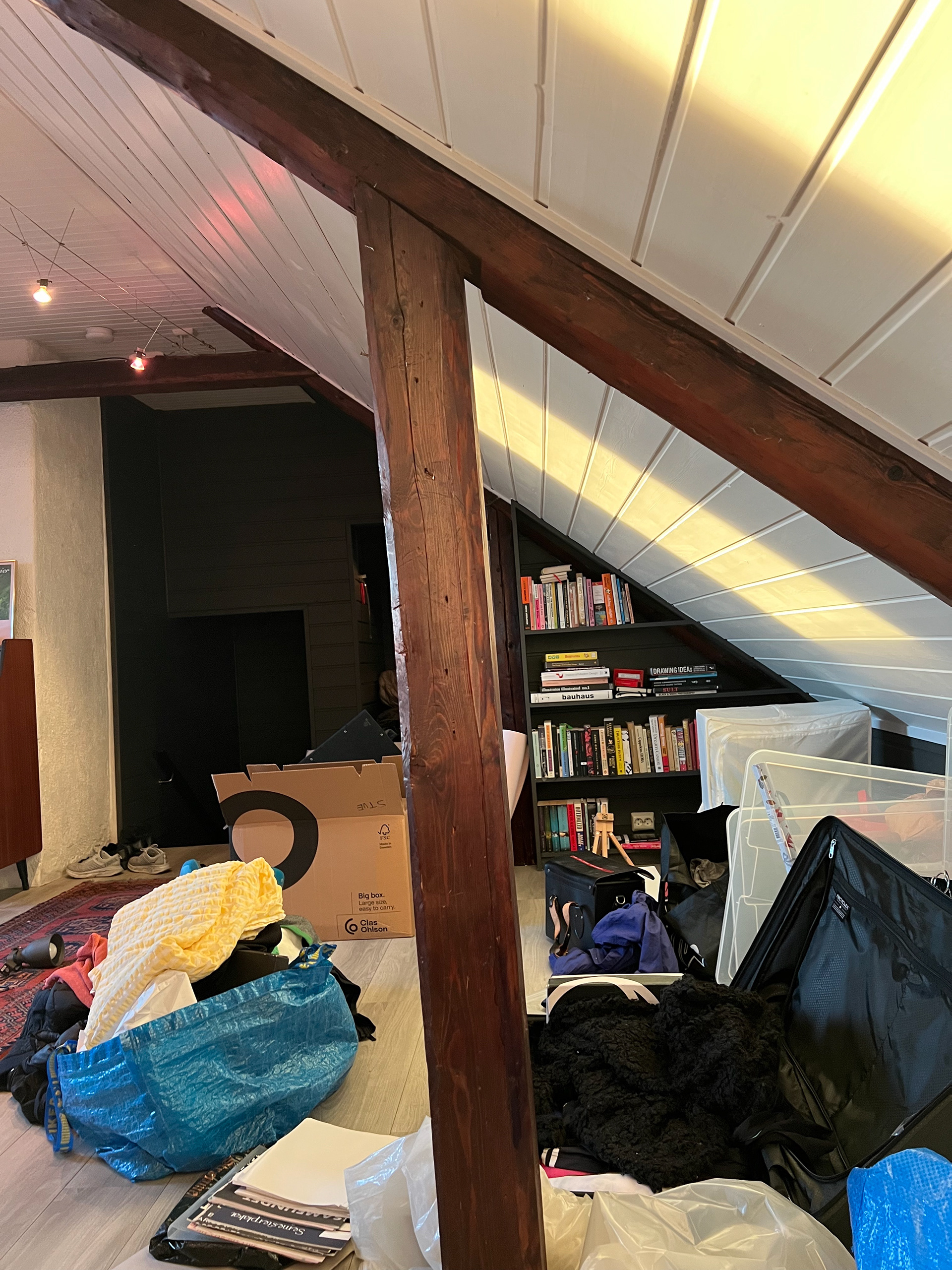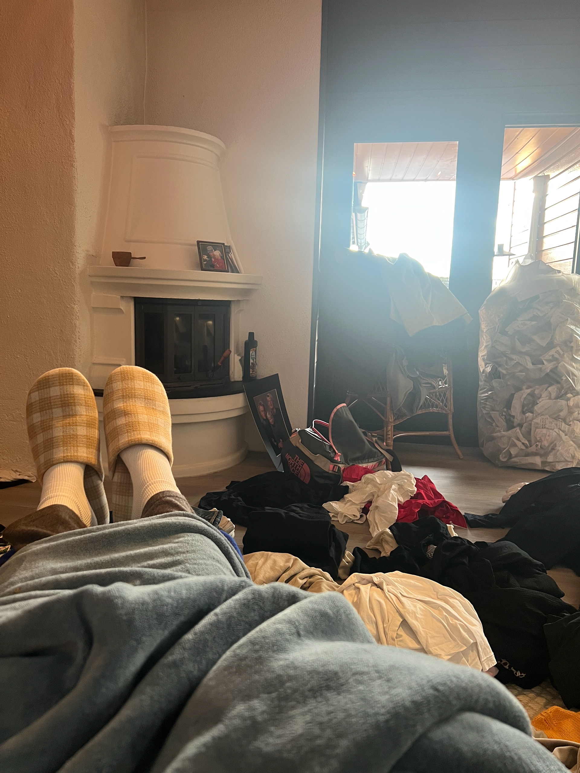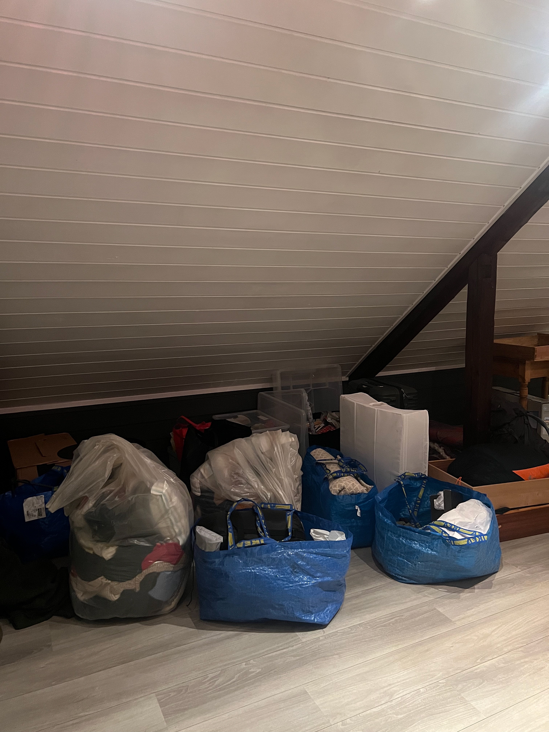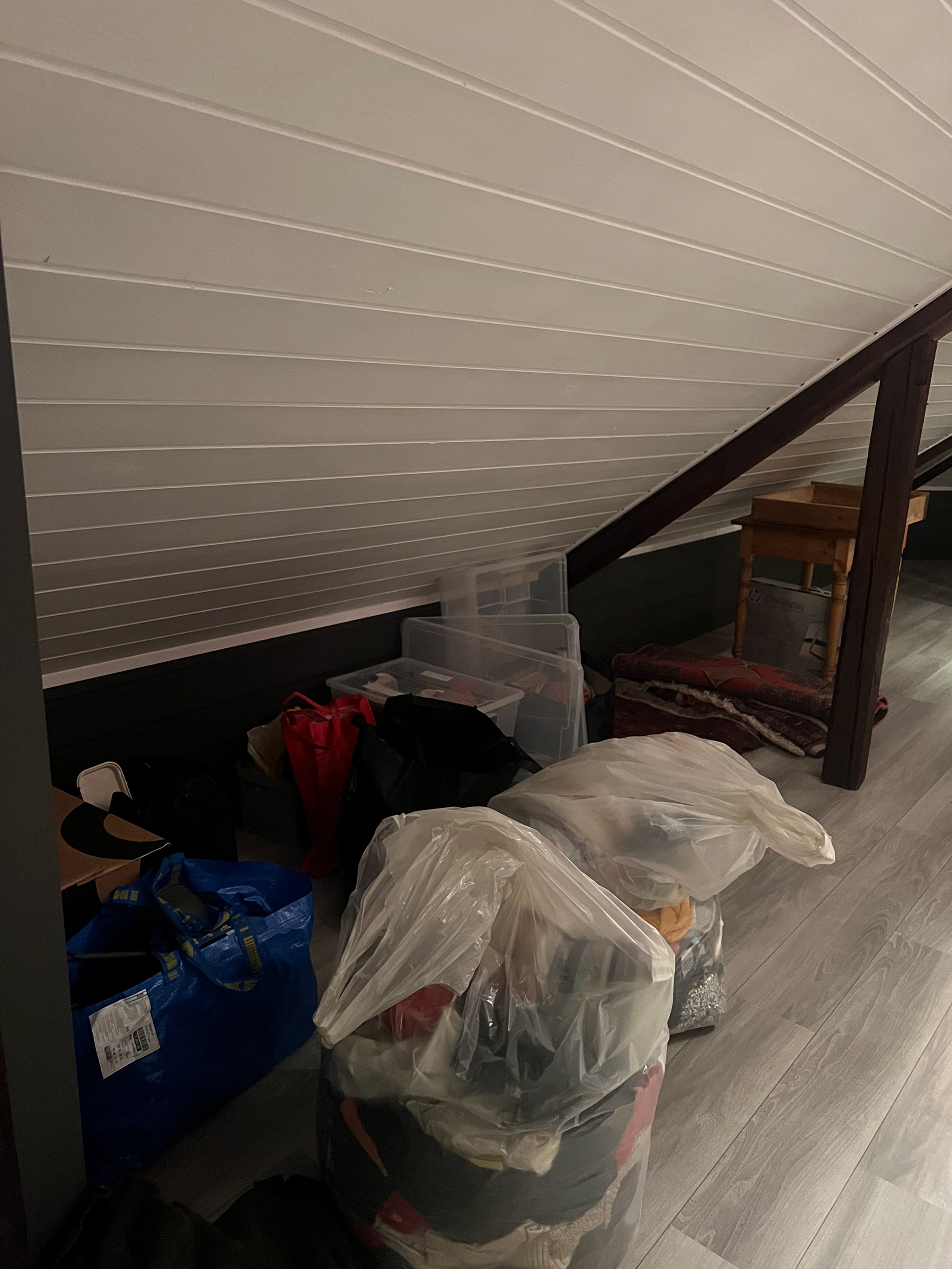 Her ser dere meg som rydder alt vi bar opp fra bilen.