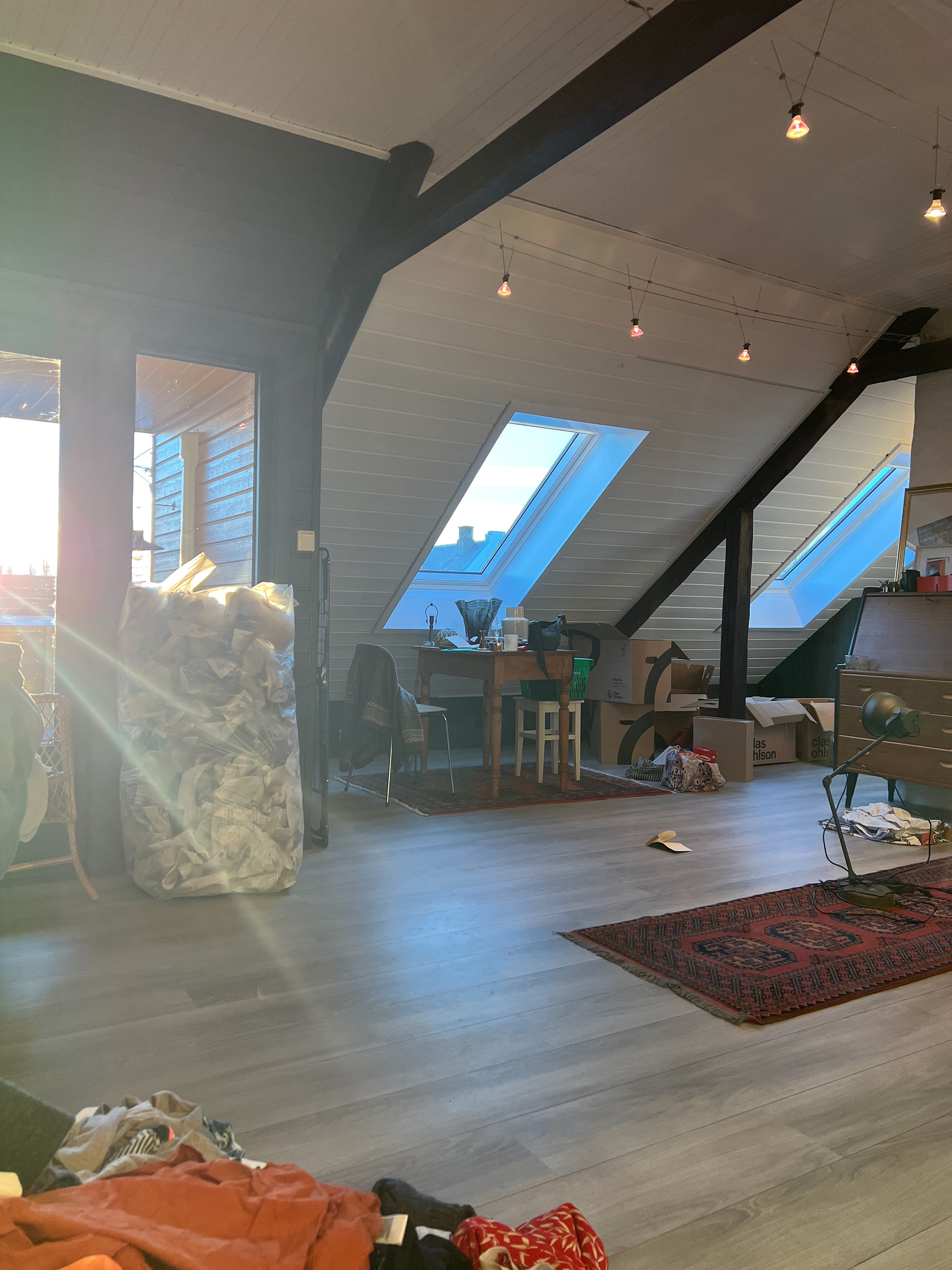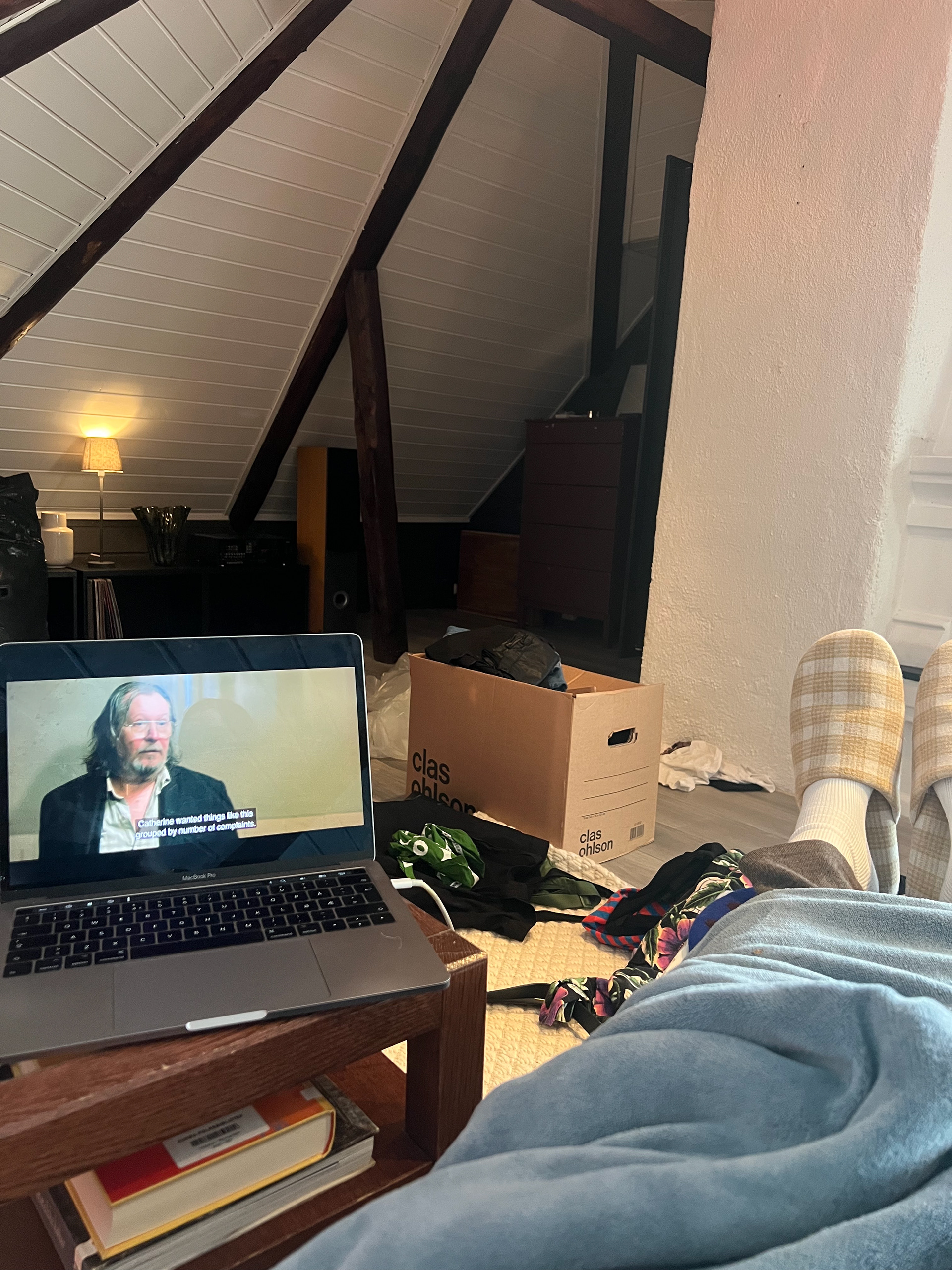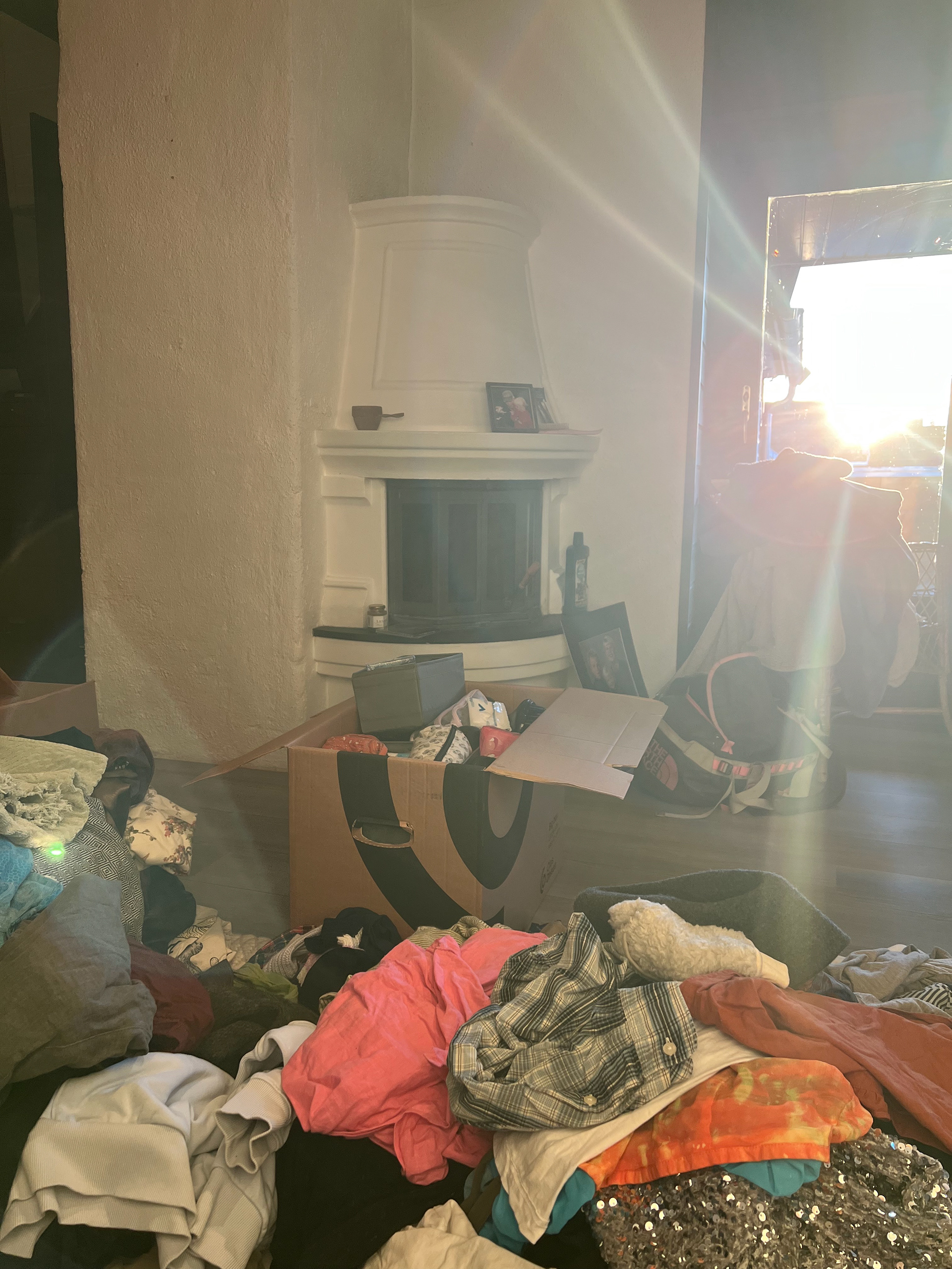 Her ser dere meg som rydder alt vi bar opp fra bilen.