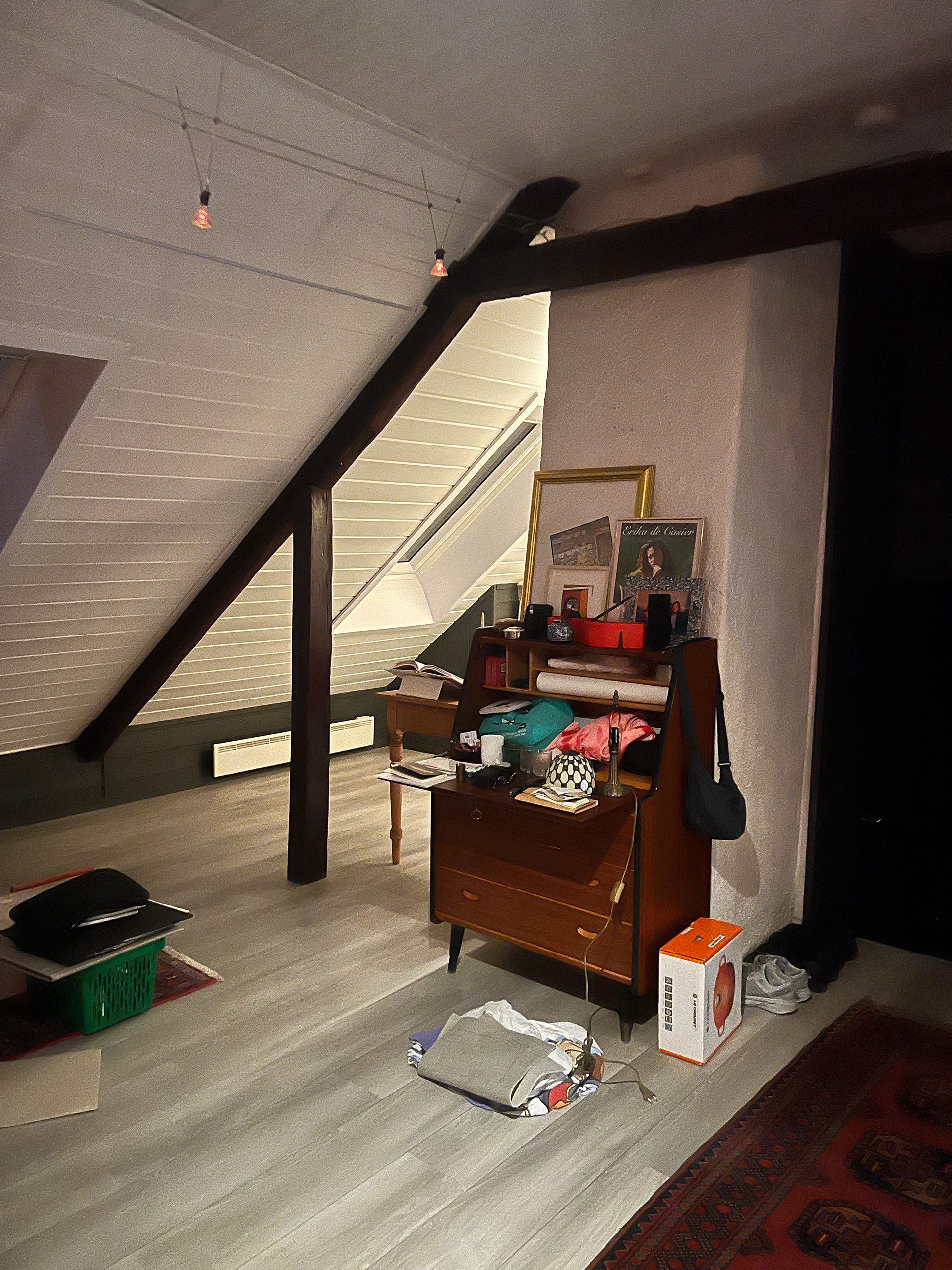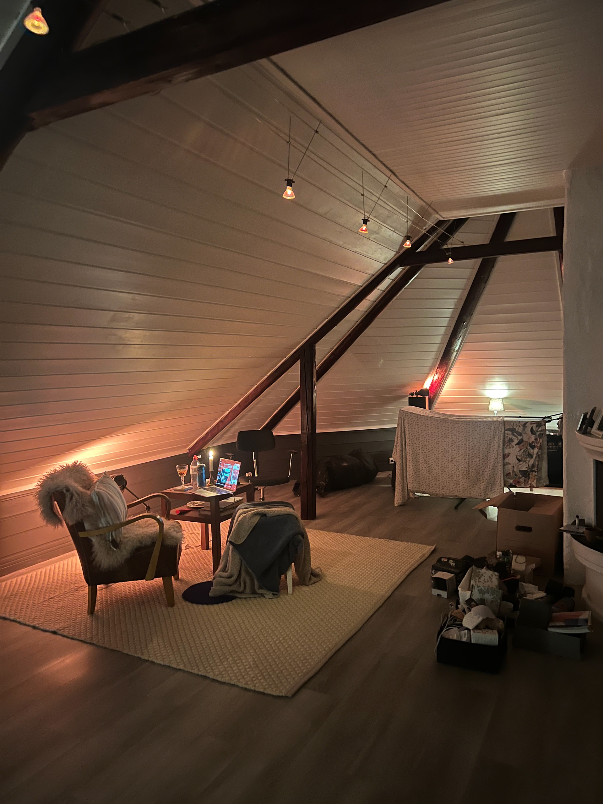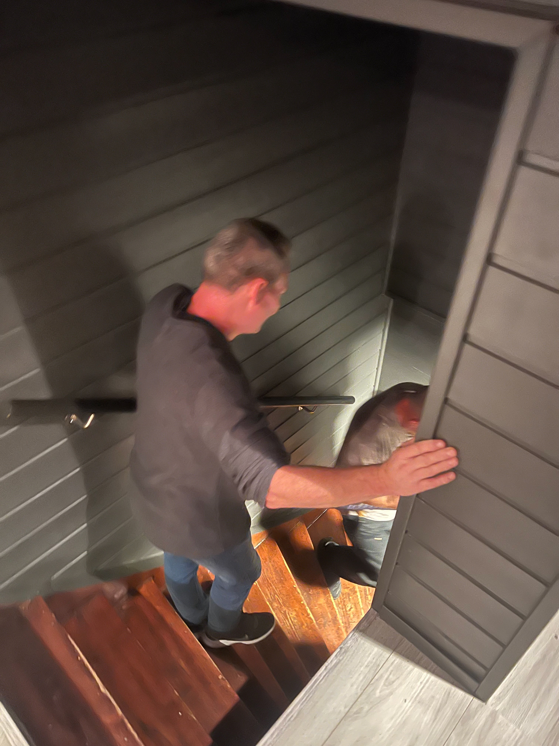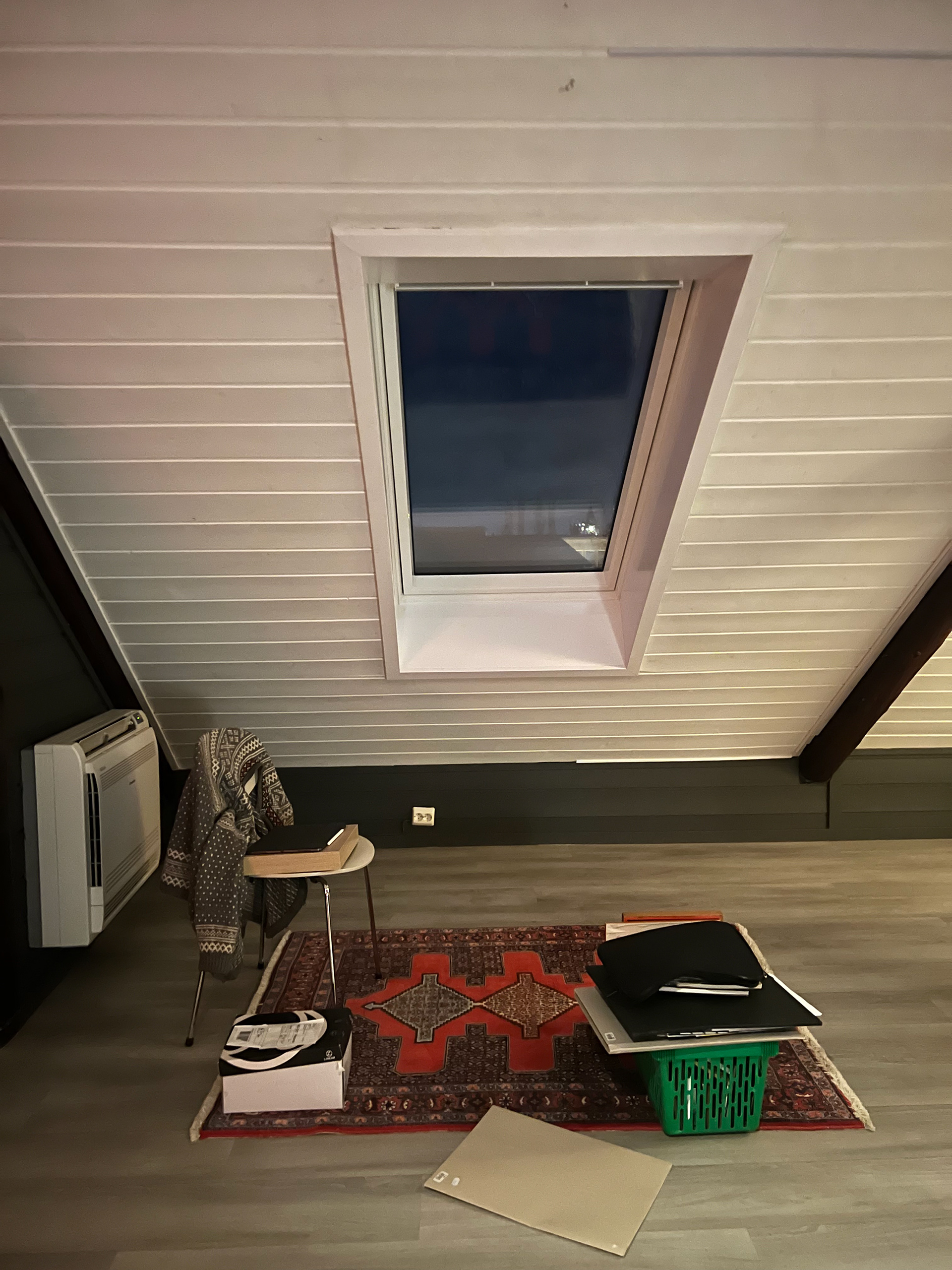 Her ser dere meg som rydder alt vi bar opp fra bilen.